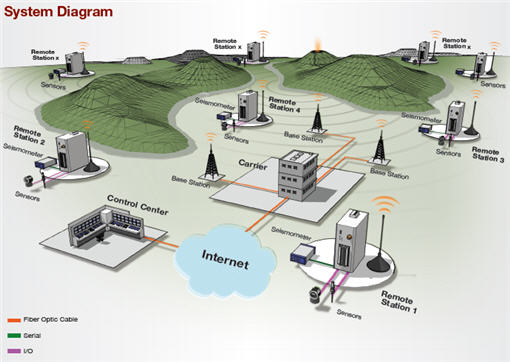此系统集成商提供监测地震信息的地震监测系统。项目中,有18个远程地震监测站分布在全国各地,并由控制中心进行监测。远程基站在无人区中部四处分布,因此布线的难度极大、费用极昂贵。GPRS通信对于此类应用是最佳选择。以前,地震监测系统由一台GPRS调制解调器、一台单板计算机及一个RS-485 I/O模块组成,但这种组合因为所有的部件均不相同因此存在许多兼容性问题。因此,客户需要一个多合一的解决方案,用来集成GPRS通信、可配置的DIO通道及串行端口至其新改进的地震监测系统。 系统要求 • GPRS通信,节省布线及维护成本 • 多合一解决方案,可靠性更高 • 用于地震仪的串行端口及用于连接传感器的DIO通道 • 主动报警消息发送,节省带宽 金笛的解决方案 该项目的18个远程地震监测站在无人区中部四处分布。金笛的GRPS Modem通过串行端口连接地震仪进行地震监测。使用GPRS通信从远程基站传输数据至控制中心,节省了布线成本。grps modem I/O通道连接传感器,当状态发生变化时,gprs modem会以TCP/UDP/e-mail/SMS向控制区发送报警消息。GPRS通信及串行接口容量完全裕足,一部单个设备上的RS232通道可实现客户所有的需求。另外,多合一设计可减少故障点总数量。 http://bbs.sendsms.com.cn/attachment...1&d=1262683634 |