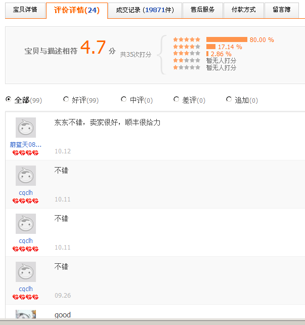 自从开通淘宝销售以来,金笛产品以稳定的质量和良好的售后服务赢得一片好评。 100%好评+0%投诉是我们时刻提醒自己并为之努力的目标。 2010年9月19日升级为钻石http://pics.taobaocdn.com/newrank/s_blue_1.gif卖家,让我们记住这个日子,感谢新老顾客一如既往的支持。 http://bbs.sendsms.com.cn/attachment...1&d=1325126150 ... http://bbs.sendsms.com.cn/attachment...1&d=1322907116 http://bbs.sendsms.com.cn/attachment...1&d=1318414137 http://bbs.sendsms.com.cn/attachment...1&d=1311484859 http://bbs.sendsms.com.cn/attachment...1&d=1299827684 http://bbs.sendsms.com.cn/attachment...1&d=1261041950 |
